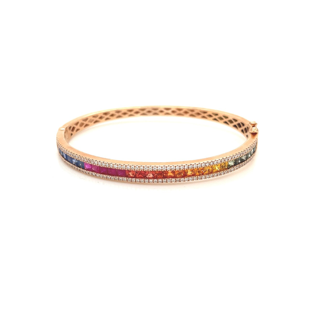 14k rose gold diamond 0.79ct and multi sapphire 4.49ct bangle