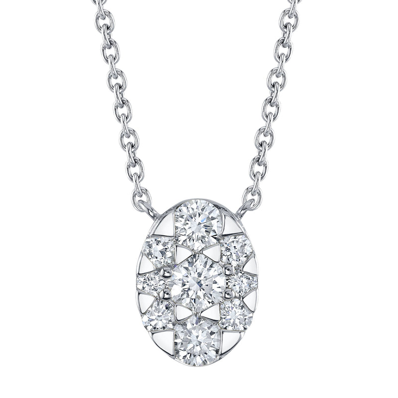 14k white gold diamod oval cluster necklace 0.42ct | J Vincent Jewelers