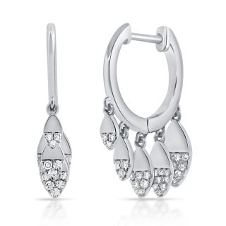 14k white gold huggie hoops with marquise shape diamonds and fringe 0.23ct | J Vincent Jewelers