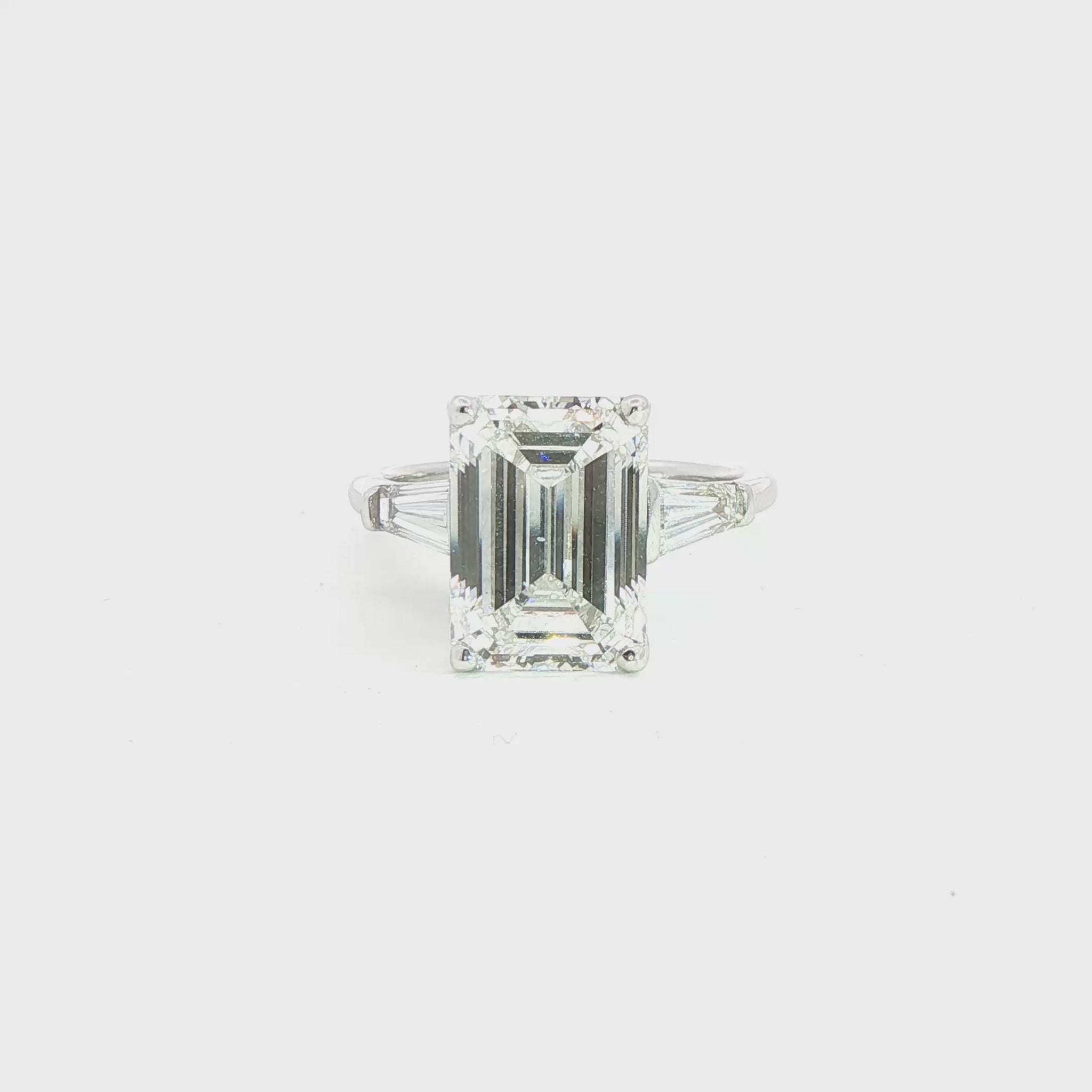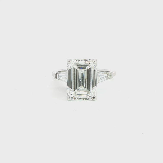 14K White Gold Lab Emerald Cut Diamond Tappered Baguette Three Stone Engagement Ring | J. Vincent Jewelers