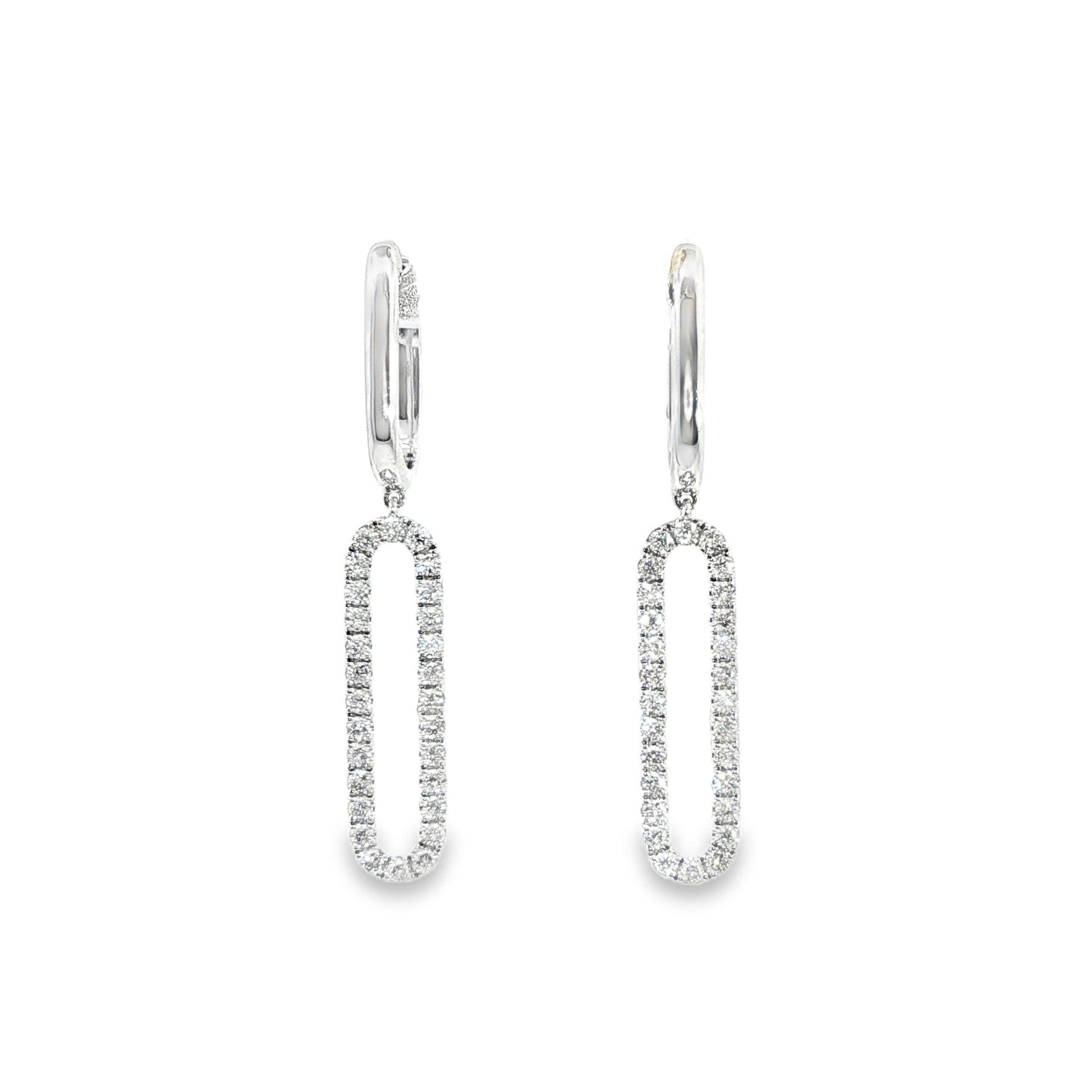 14K White Gold Paper Clip Dangle Earrings With Diamonds | J. Vincent Jewelers
