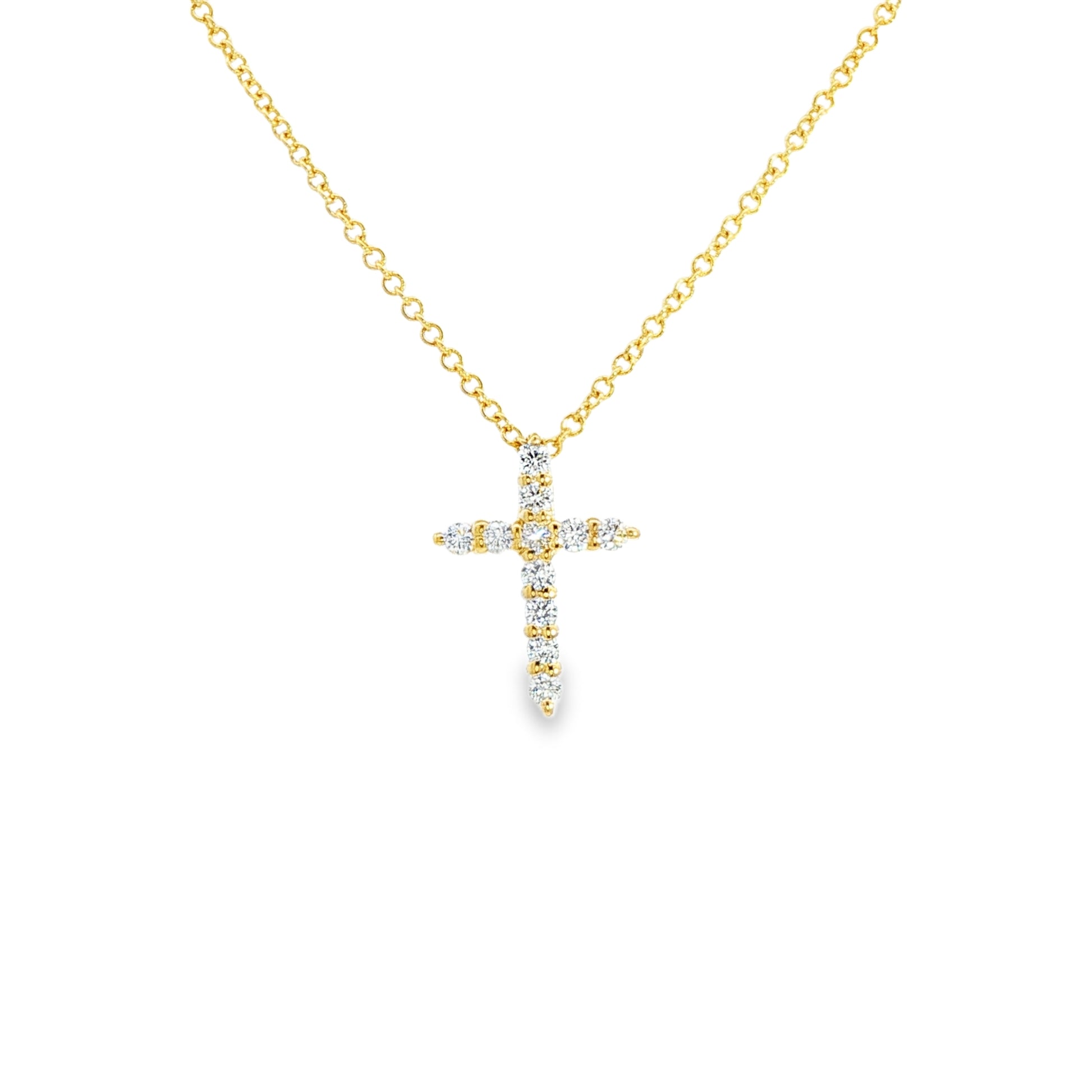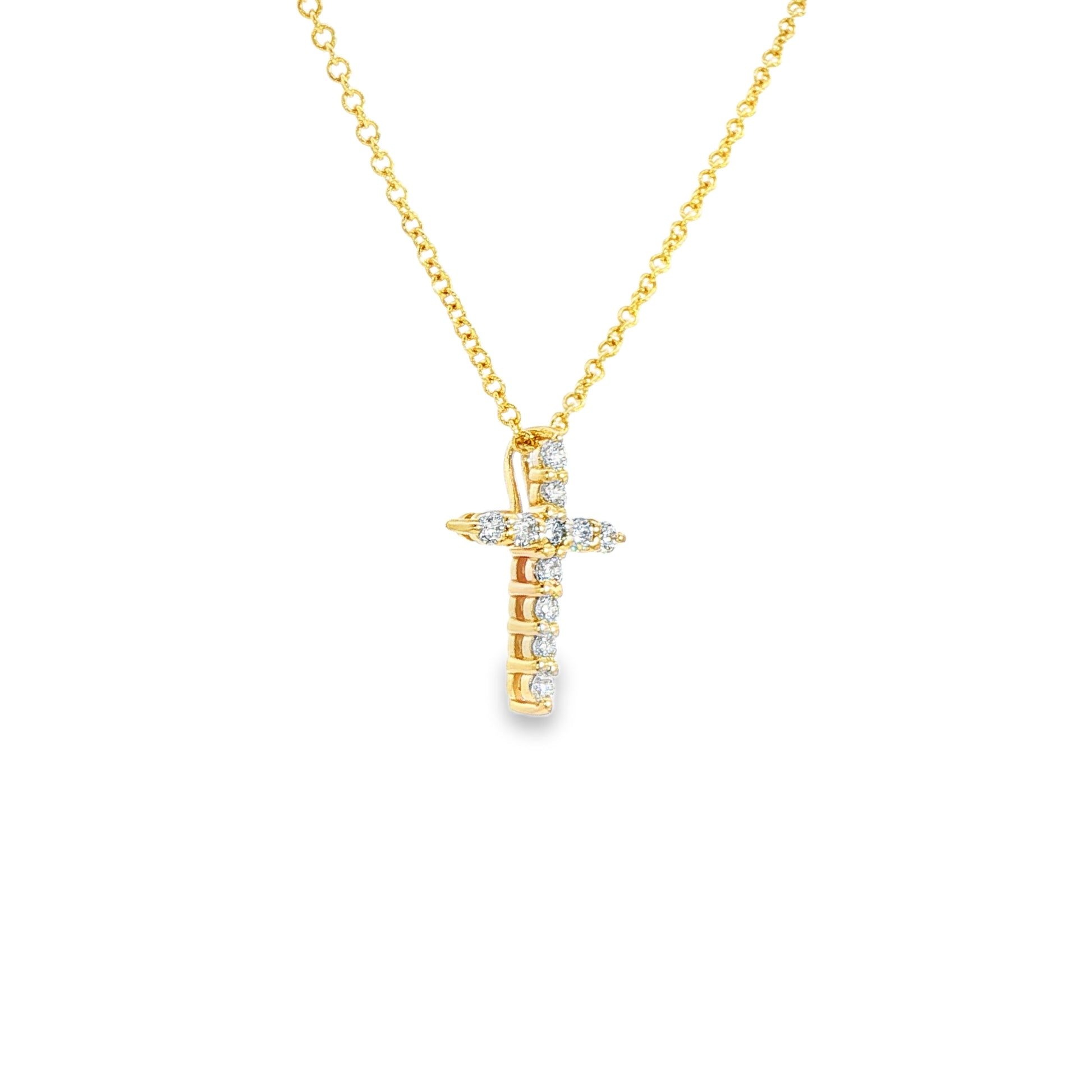 14K Yellow Gold Diamond Cross Pendant Necklace Containing 11 Round Diamonds 0.25Ctw