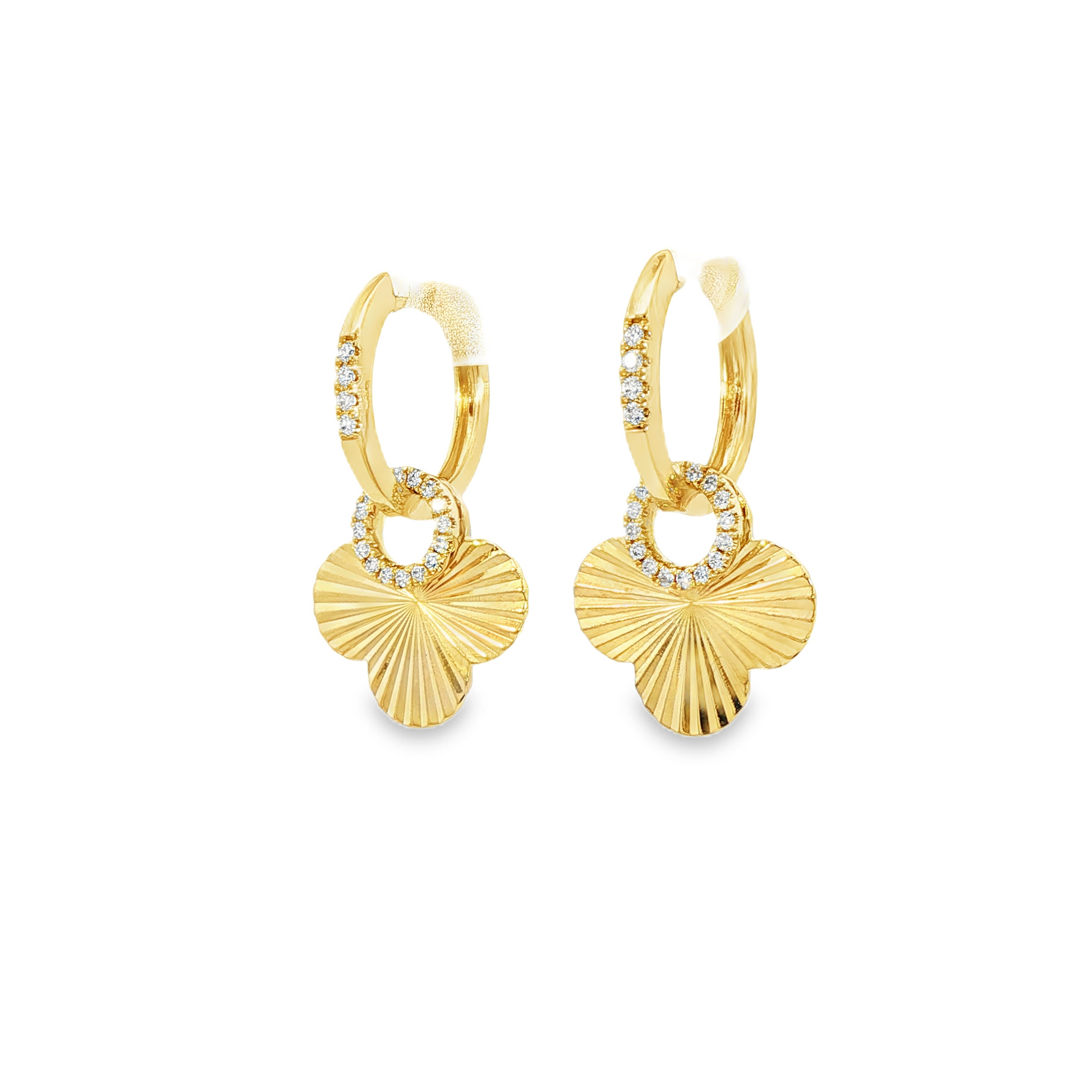 14K Yellow Gold Diamond Hoop Earrings With Flutted Clovers 0.16Ctw