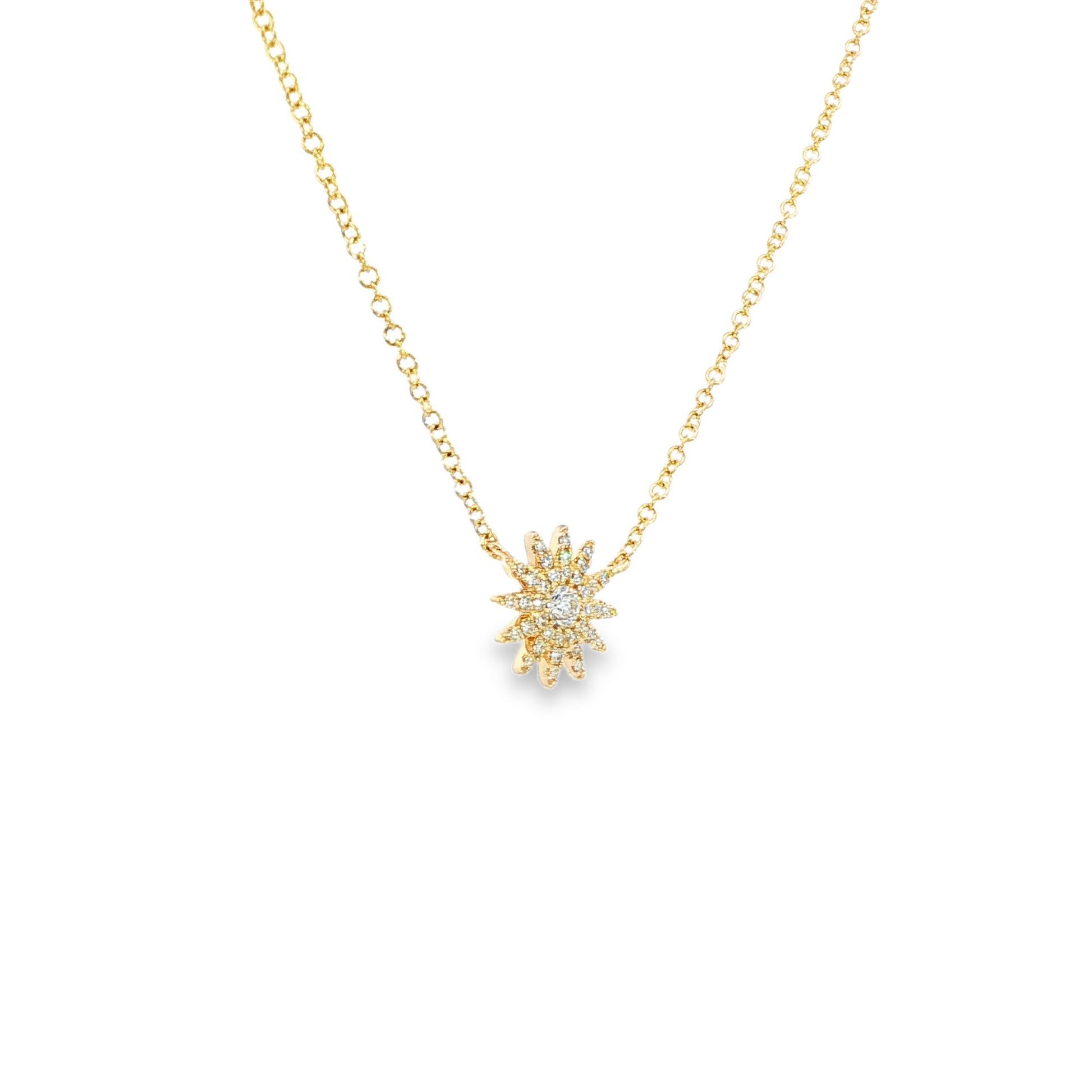 14K Yellow Gold Diamond Starburst Pendant Necklace 0.15Ctw | J. Vincent Jewelers