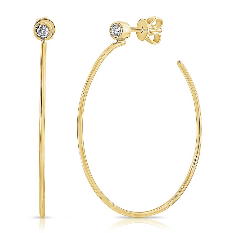 14k yellow gold hoops with bezel set round diamonds 0.12ct