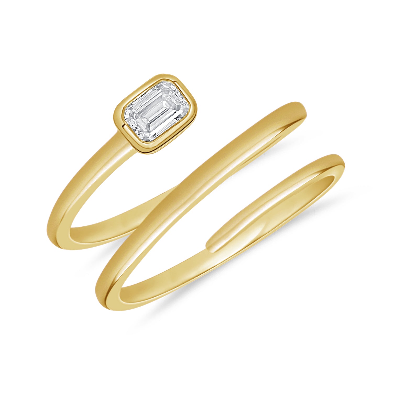 14K Yellow Gold Womens Bezel Set Emerald Diamond Wrap Ring 0.30Ct | J. Vincent Jewelers