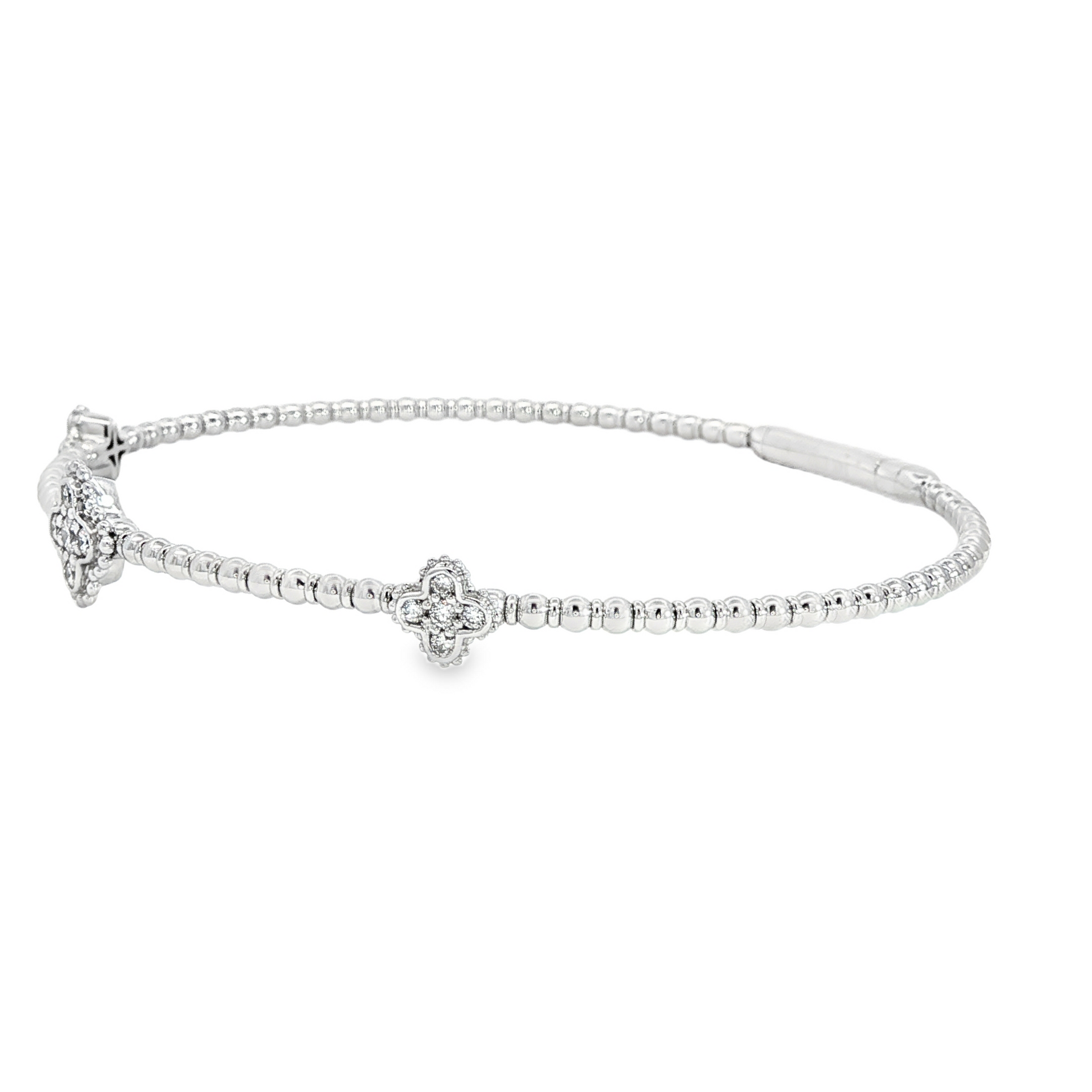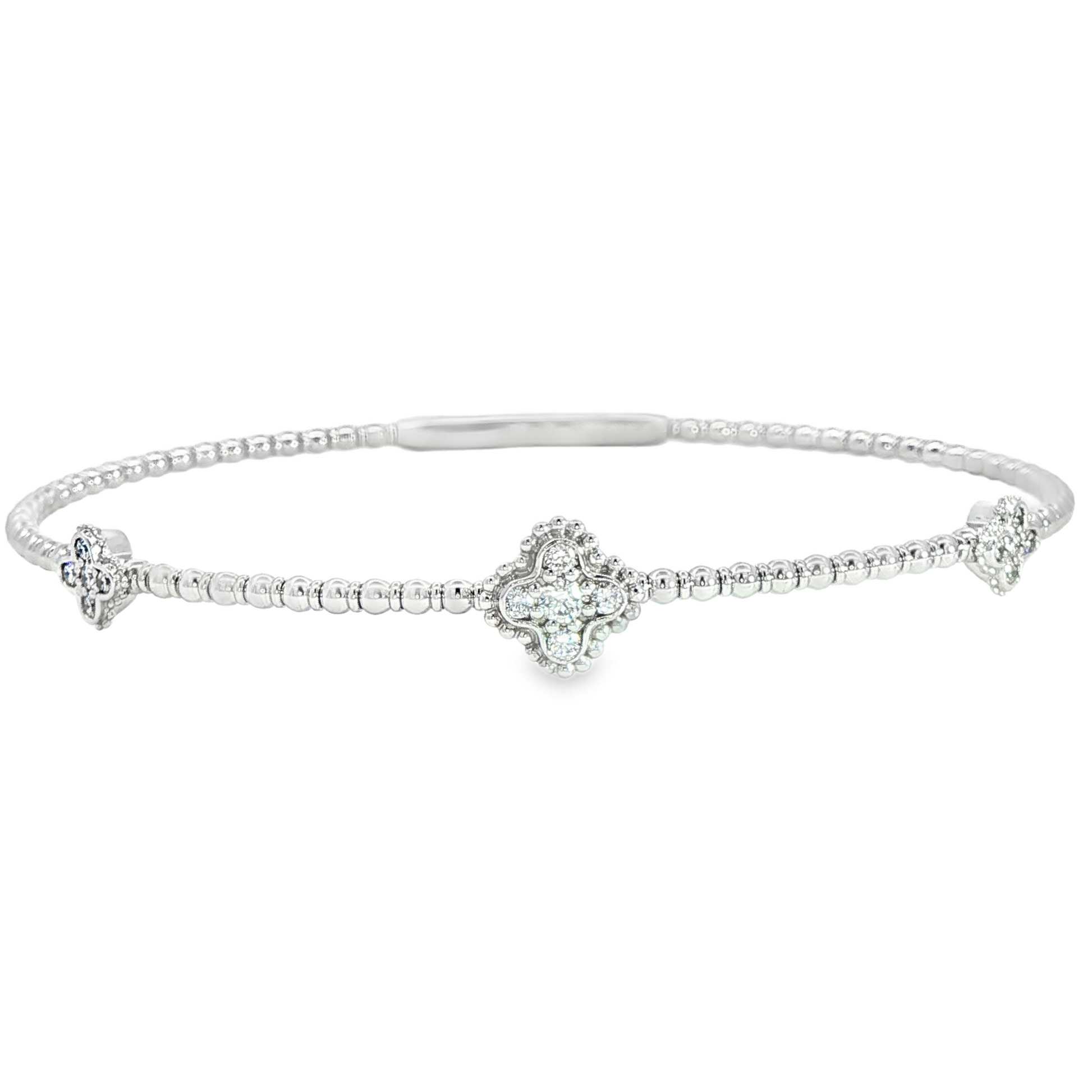 14Kwg Diamond Flex Station Bracelet Containng 3 Sections Of 4- Leaf Design 15 Rd = 0.20Ct