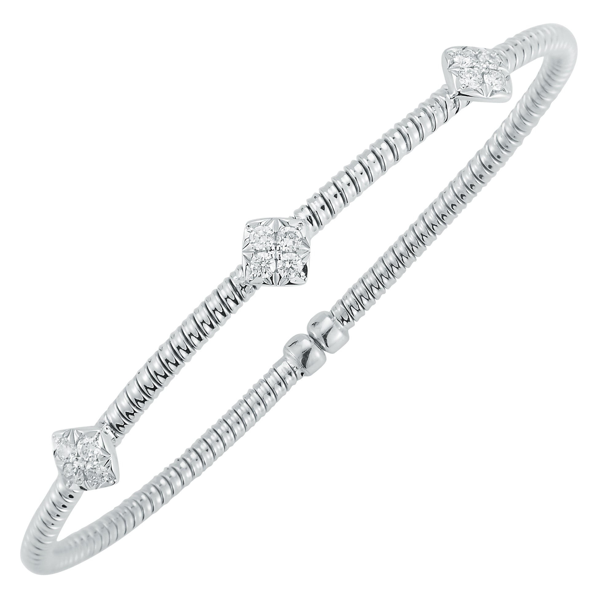 18K White Gold 0.30Ct Diamond Flex Bangle Bracelet | J. Vincent Jewelers