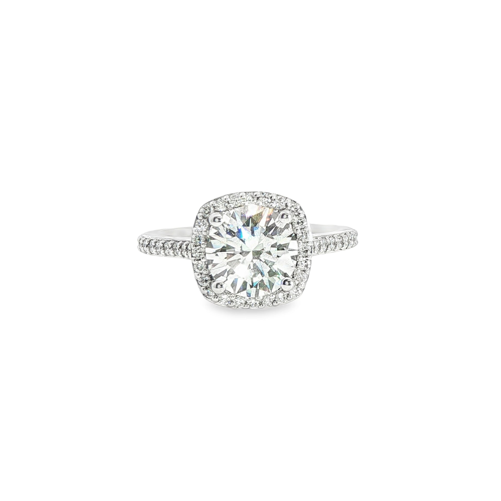 18k white gold cushion halo diamond engagement ring 2.32ct | J Vincent Jewelers