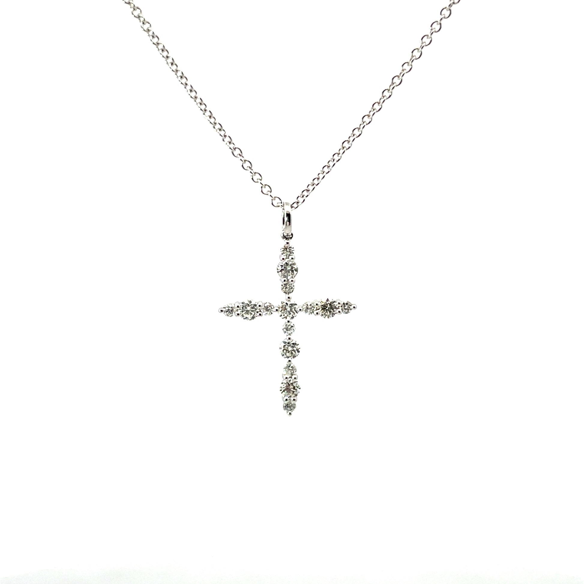 18K White Gold Diamond Cross On 18" Chain 0.48Ct | J Vincent Jewelers