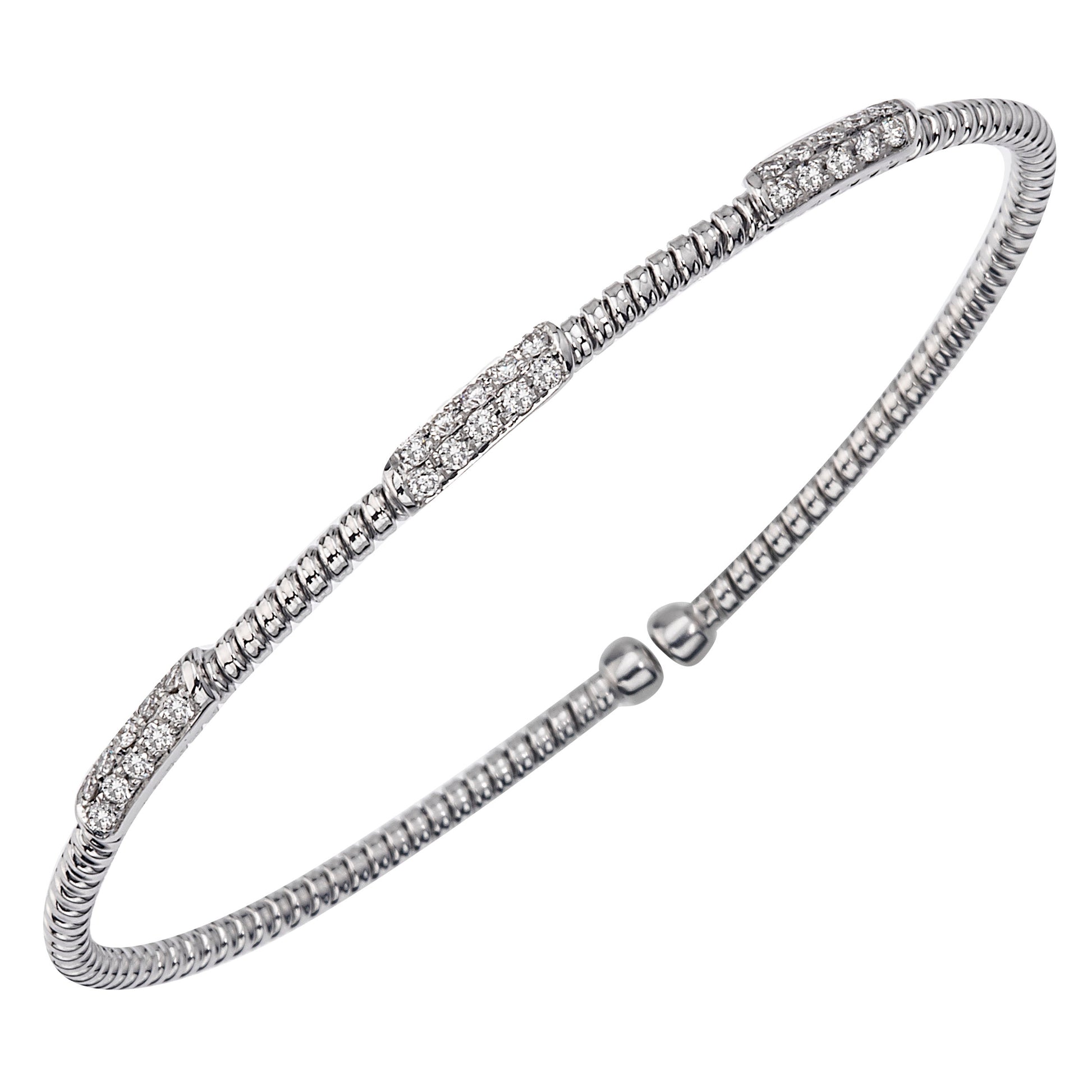 18k white gold three station diamond cuff 0.40ct