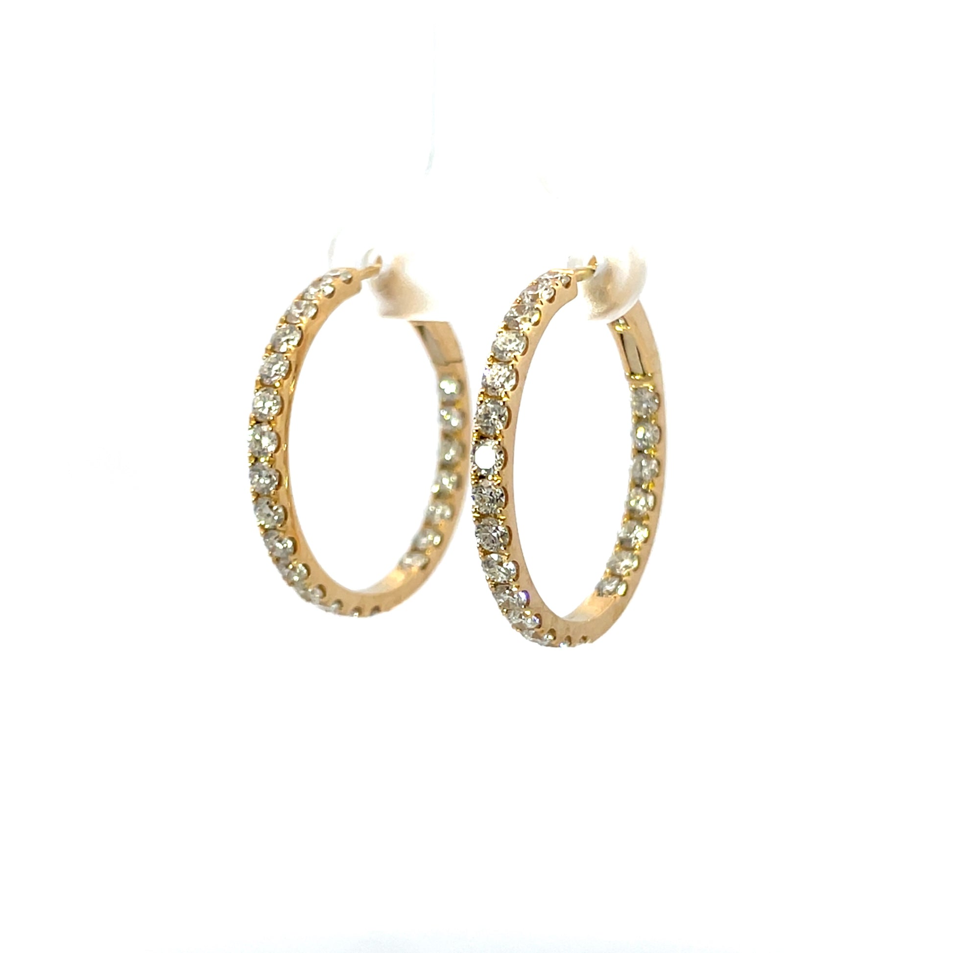 18K Yellow Gold 1" Round Diamond Hoop Earrings 2.05Ct | J. Vincent Jewelers