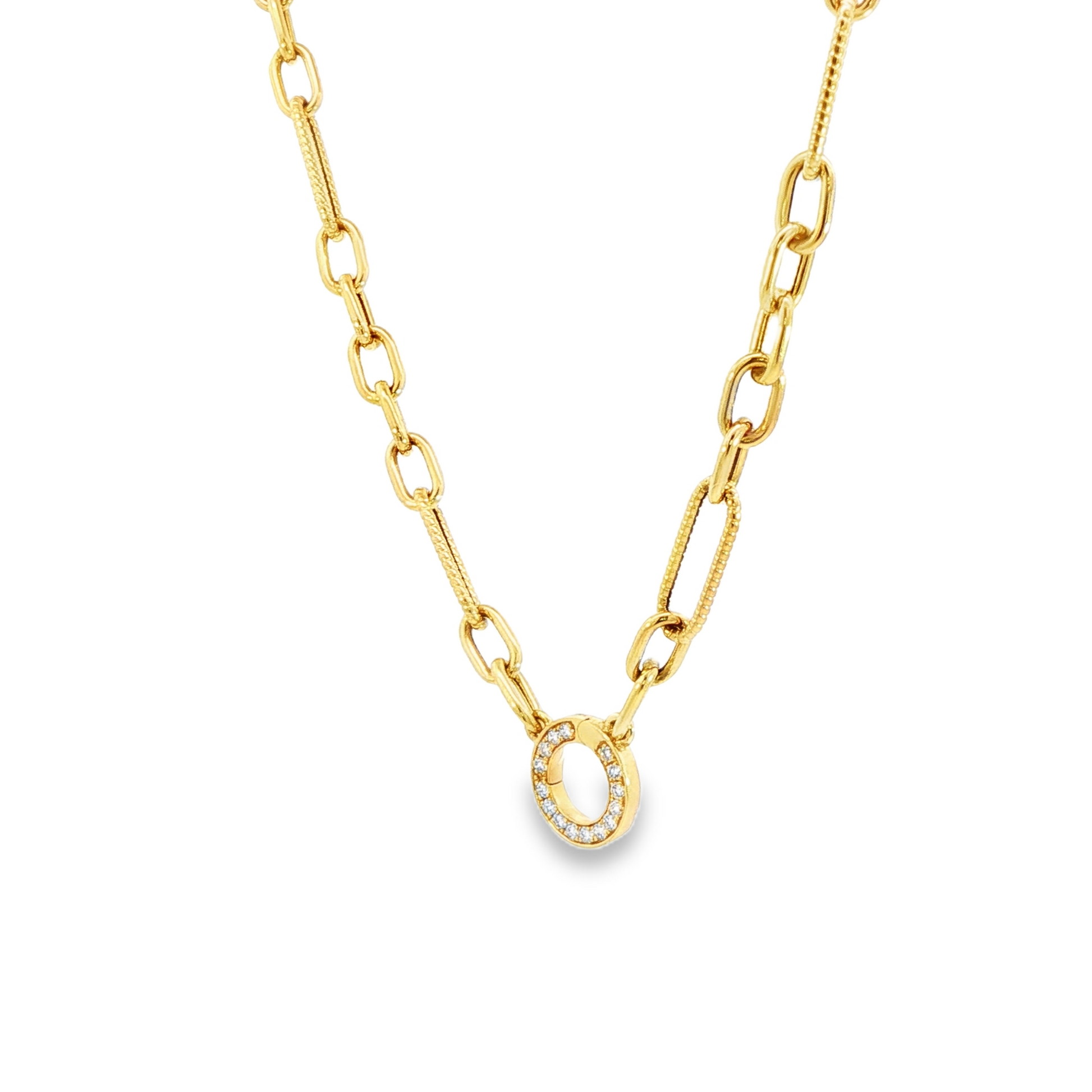 18K Yellow Gold Paperclip Chain Necklace With Pave Diamond Snap Bale 0.13Ctw | J. Vincent Jewelers