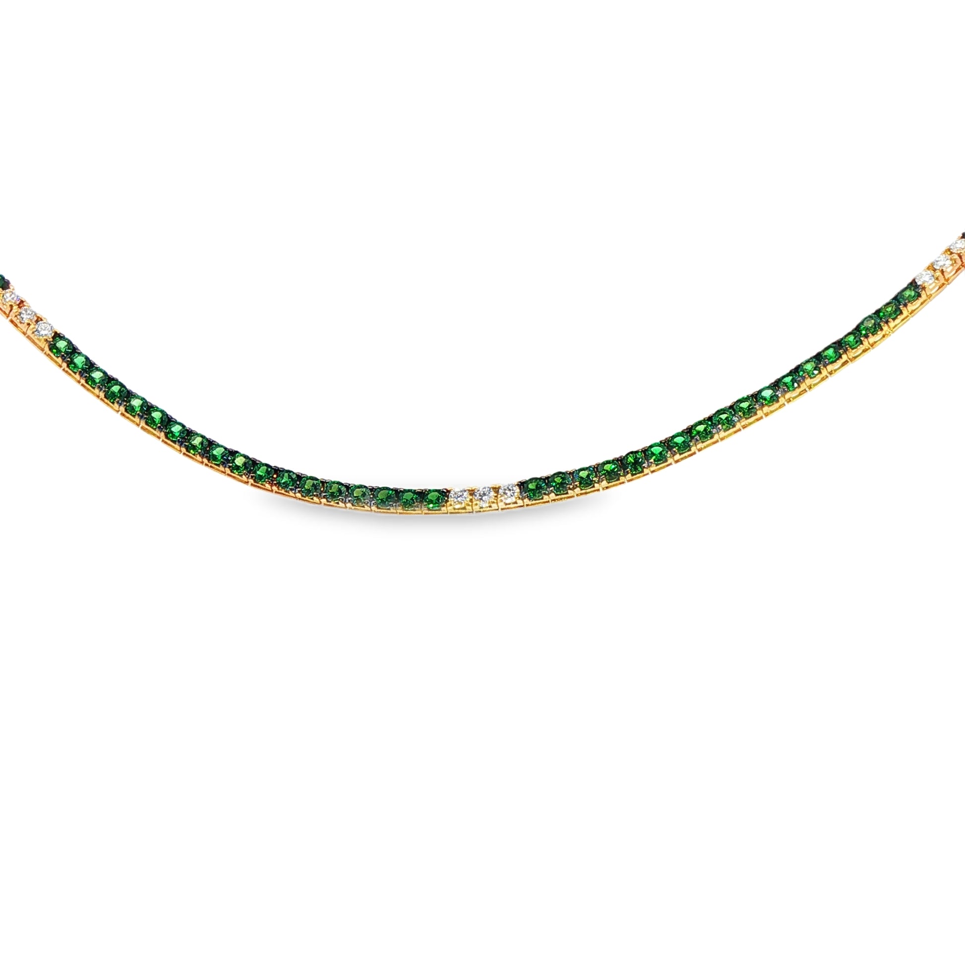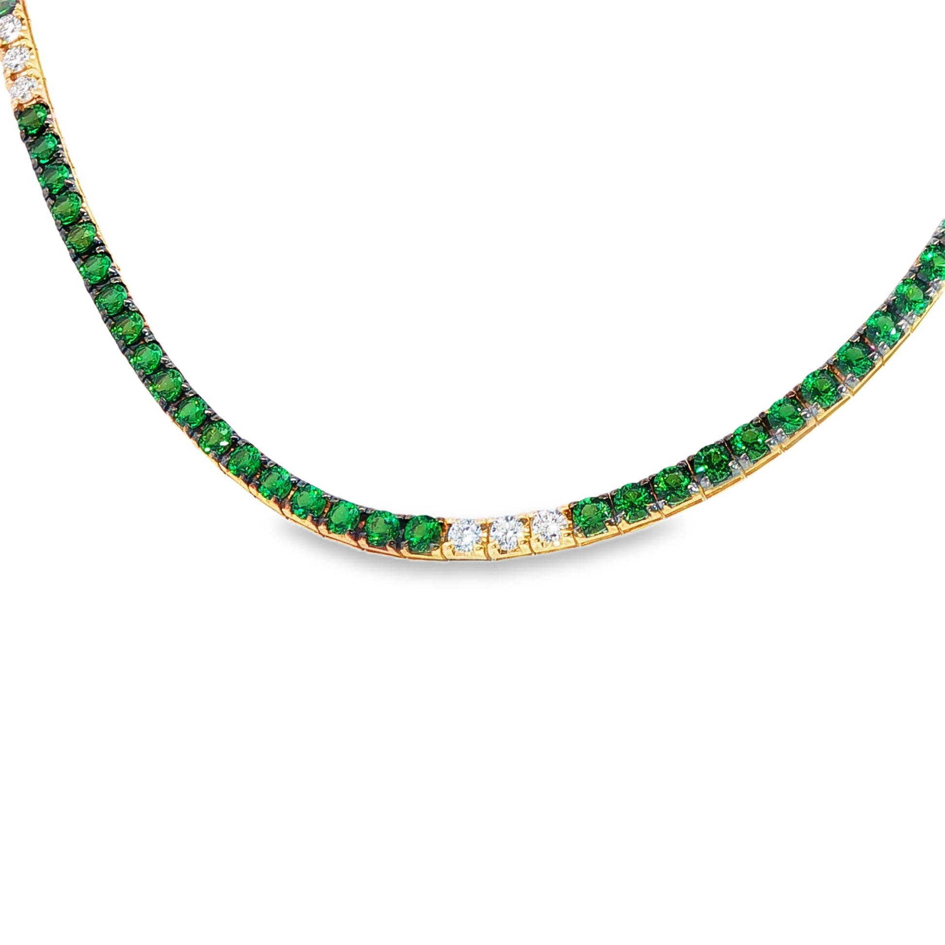 18K Yellow Gold Tsavorite Garnet And Diamond Line Necklace Containing Round Diamonds 0.90Ctw And Rounds Tsavorites 8.30Ctw