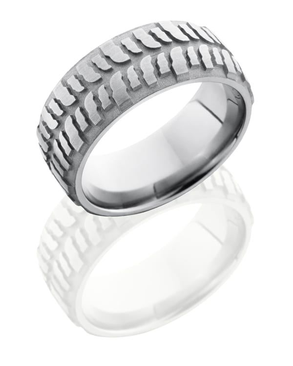 Titanium 9mm Domed Band with Bogger Tire Pattern