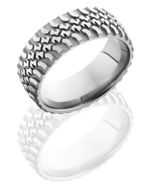 Titanium 9mm Domed Band with Truck Tire Pattern