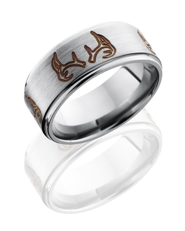 Titanium 9mm Flat Band with Grooved Edges and Antler Pattern
