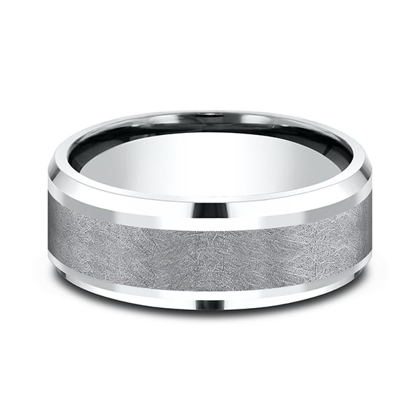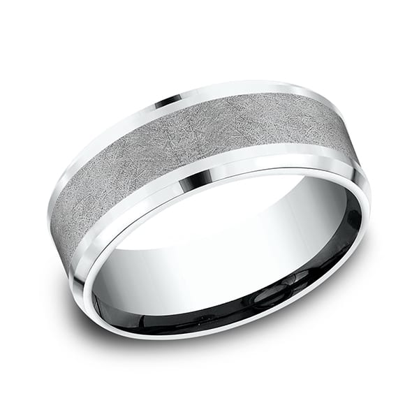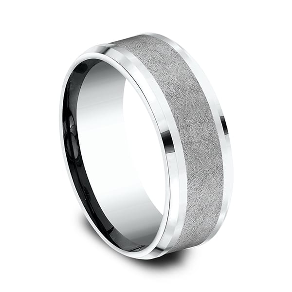 A swirl finish tantalum inlay is the highlight of this white gold 8mm comfort-fit design wedding band. Ammara Stone wedding bands are contemporary wedding rings fusing traditional precious metals with exciting new alternative metals like black titanium and tantalum. Responsibly made in the USA, you can feel good about choosing one of our Ammara Stone wedding bands as a symbol of your commitment.
