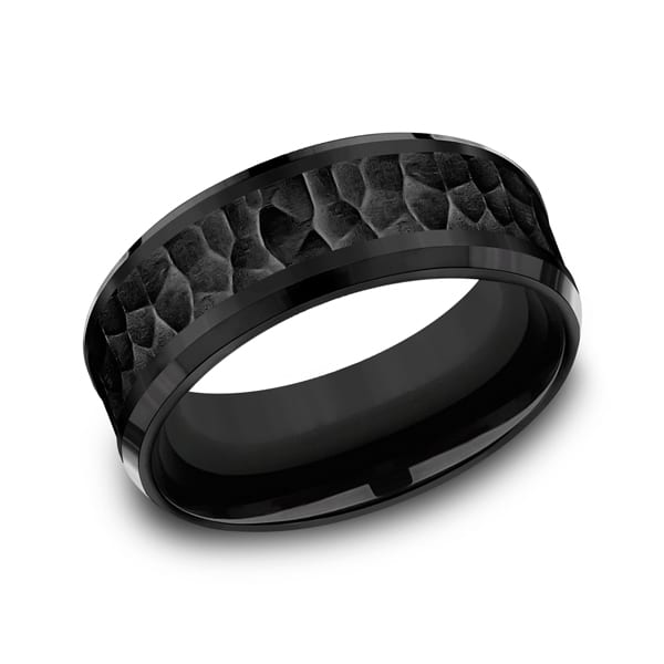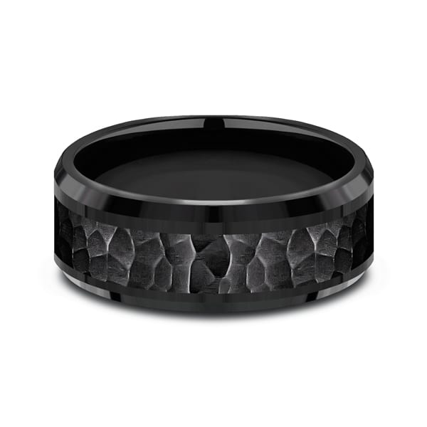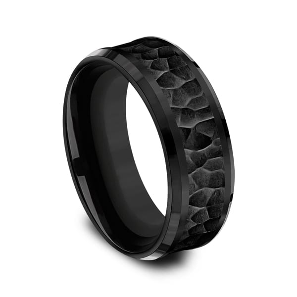 Hand hammering ensures that no two wedding rings are alike on this classic 8mm comfort-fit Black titanium style. Forge by Benchmark offers contemporary wedding rings in cobalt, titanium, Damascus Steel and tungsten. Some of our most durable and rugged wedding bands for men, our Forge line of wedding rings are sure to last a lifetime.