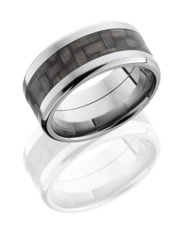 Titanium 10mm Beveled Band with 5mm of Carbon Fiber