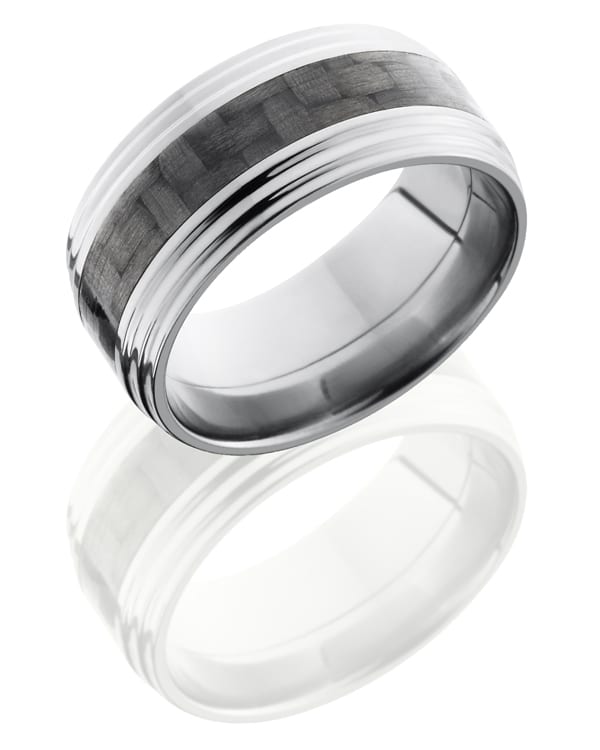 Titanium 10mm Flat Band with 4mm of Carbon Fiber and Double Grooved Edge