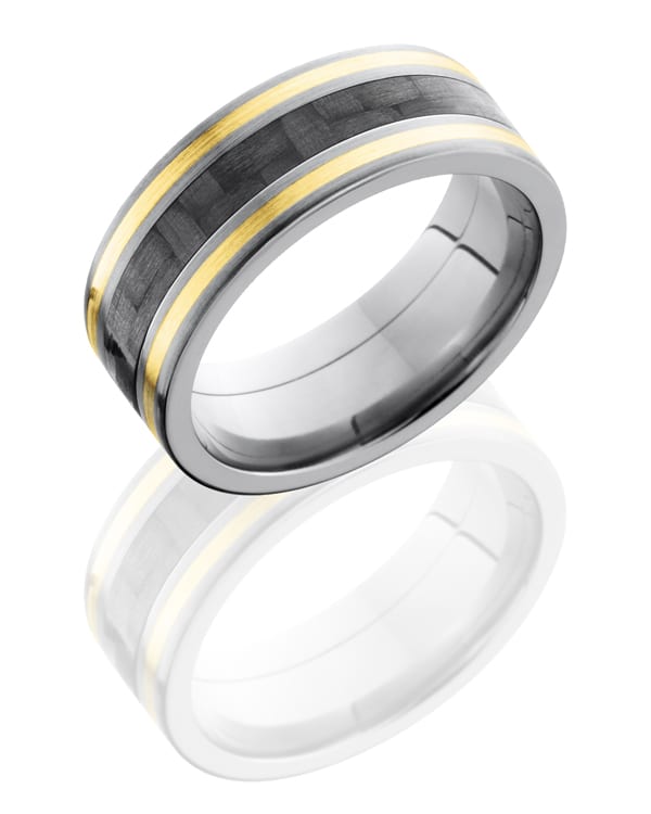 Titanium 8mm Flat Band with 3mm of Carbon Fiber and 14KY Inlay