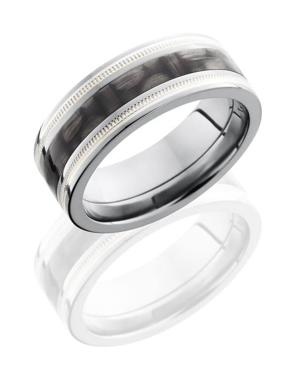 Titanium 8mm Flat Band with 3mm of Carbon Fiber and Milgrained SS Inlay