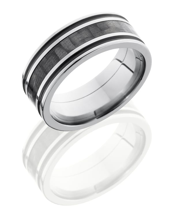 Titanium 8mm Flat Band with 3mm of Carbon Fiber and Black Antiquing