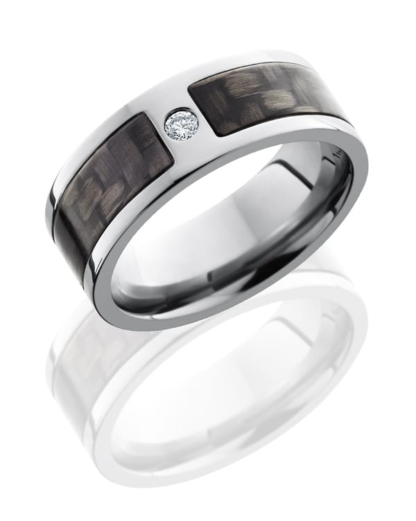 Titanium 8mm Flat Band with 5mm of Carbon Fiber and Flush-set .07 White Round Diamond