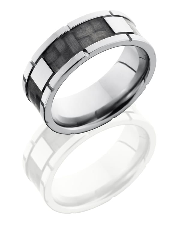 Titanium 8mm Flat Band with 4 segments of Carbon Fiber