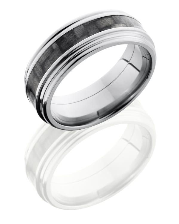 Titanium 8mm Flat Band with 3mm of Carbon Fiber and Rounded Edges