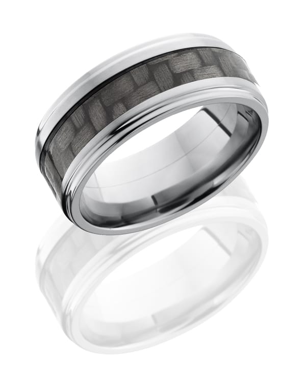 Titanium 9mm Flat Band with 4mm of Carbon Fiber and Grooved Edges