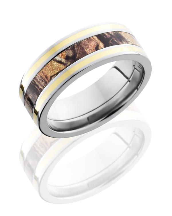 Titanium 8mm Flat Band with 3mm of Realtree AP Camo and Yellow Gold Inlay
