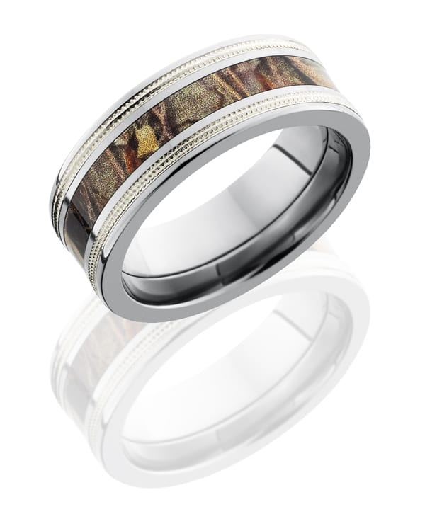 Titanium 8mm Flat Band with 3mm of Max4 Camo and Sterling Silver Milgrained Inlay