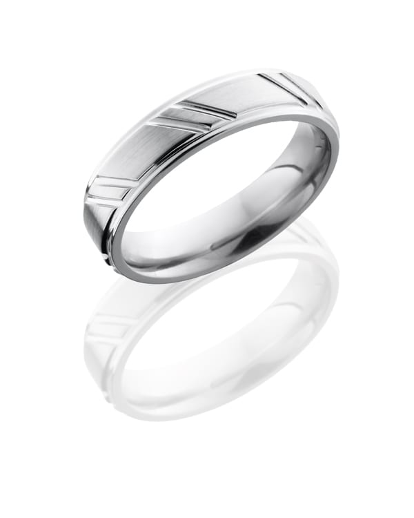 Cobalt Chrome 5mm flat Band with Grooved Edges and Striped Pattern