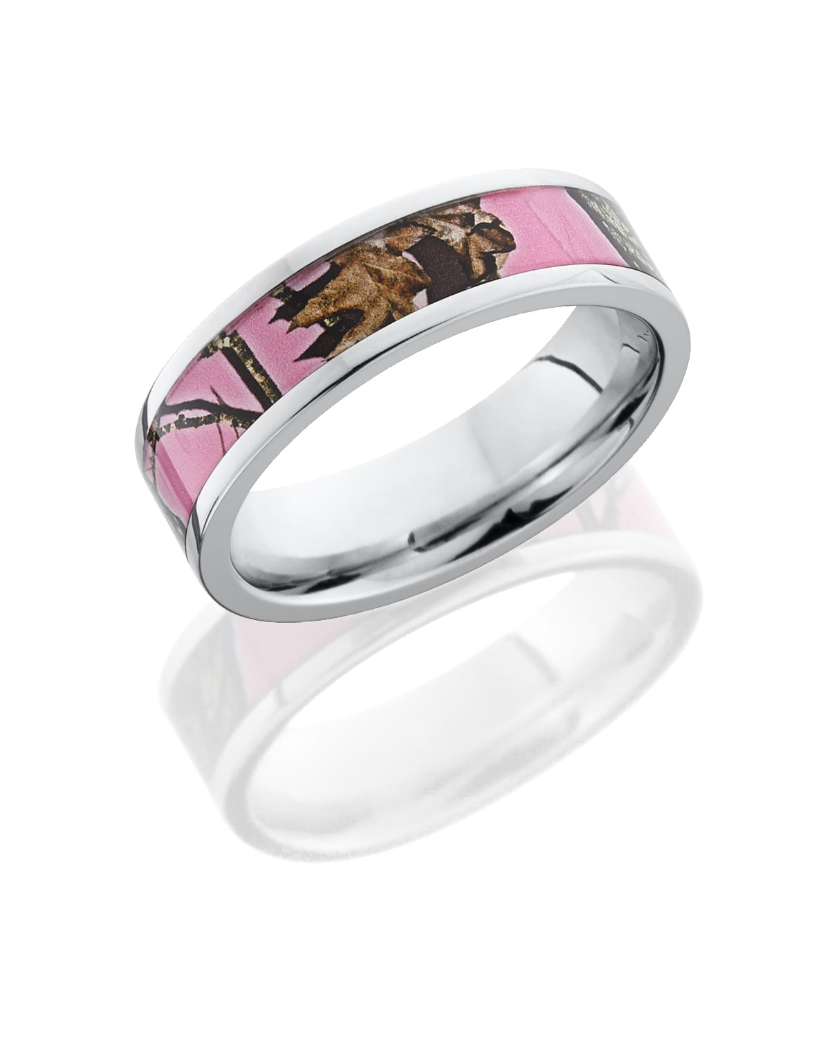 Cobalt Chrome 6mm flat band with 4mm Mossy Oak Pink Break-Up pattern