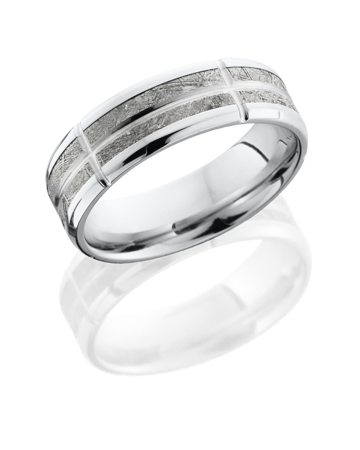 Cobalt Chrome 7mm beveled band with meteorite inlay with 5 segments and 1mm groove in center