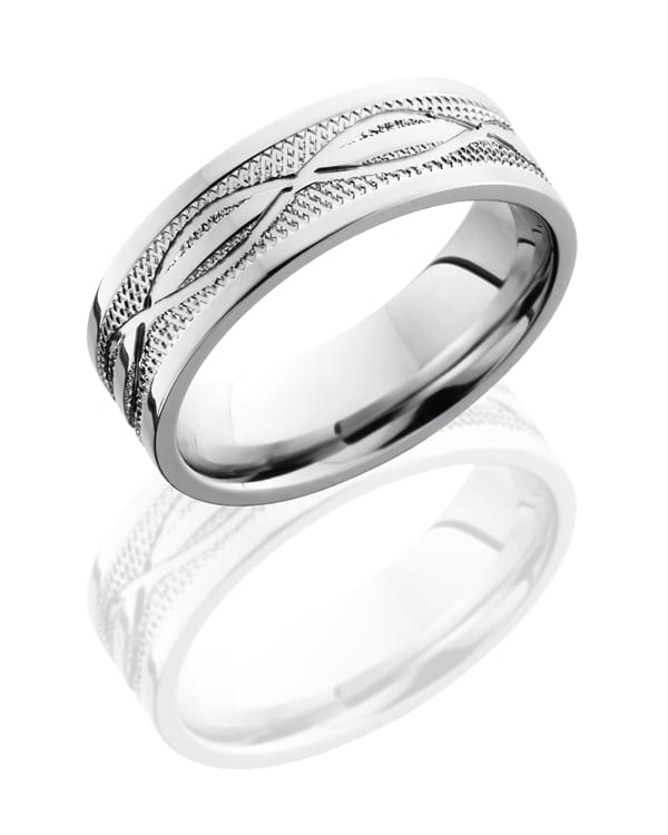 Cobalt Chrome 7mm Flat Band with Infinity and Knurl Pattern