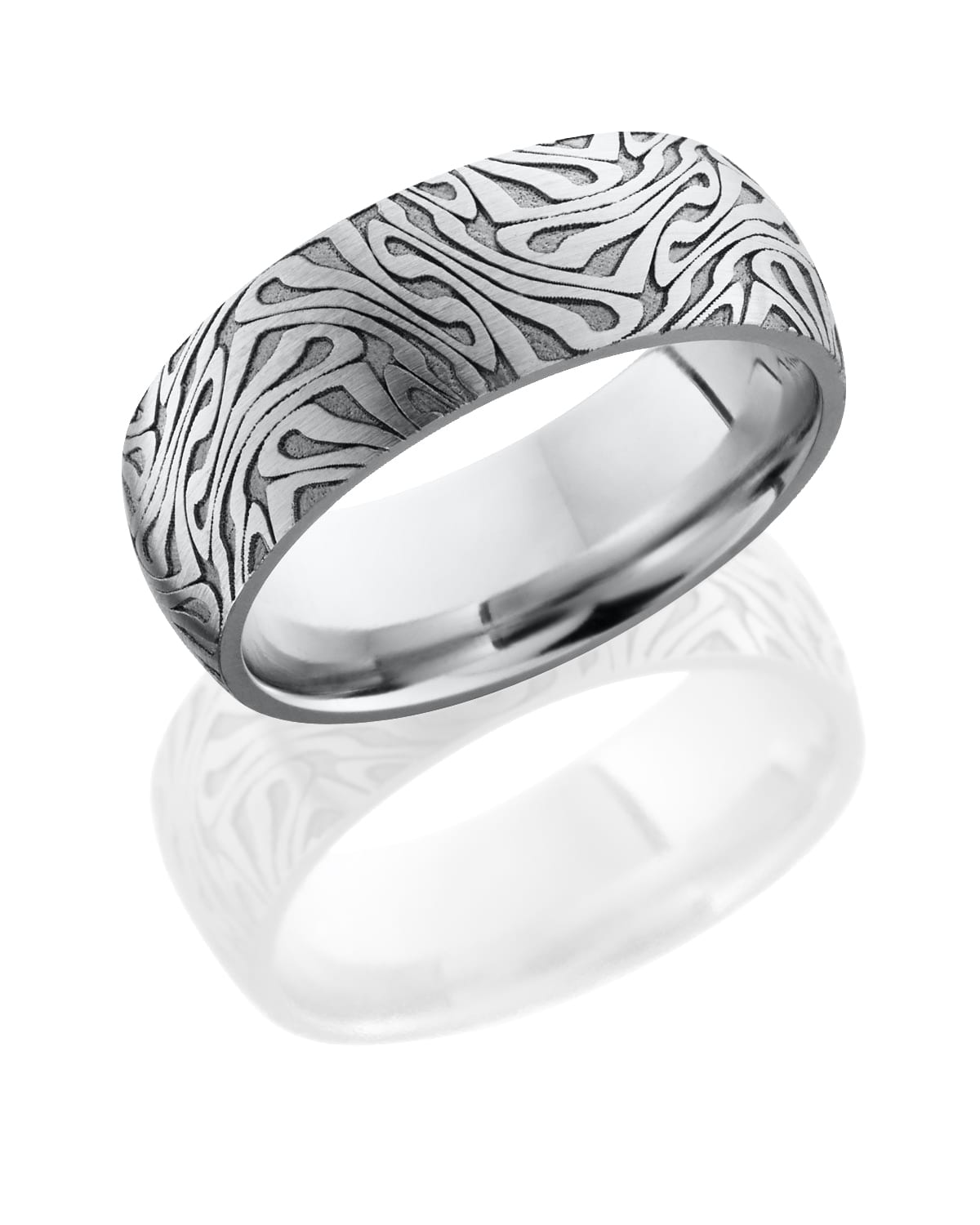 Cobalt Chrome 8mm domed band with laser carved Escher 1 pattern