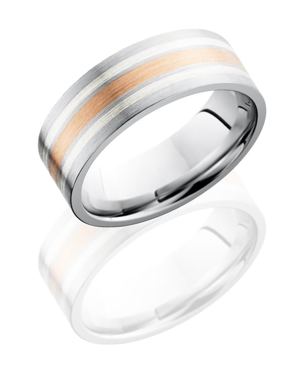Cobalt Chrome 8mm Flat Band with 14KR and Sterling Silver