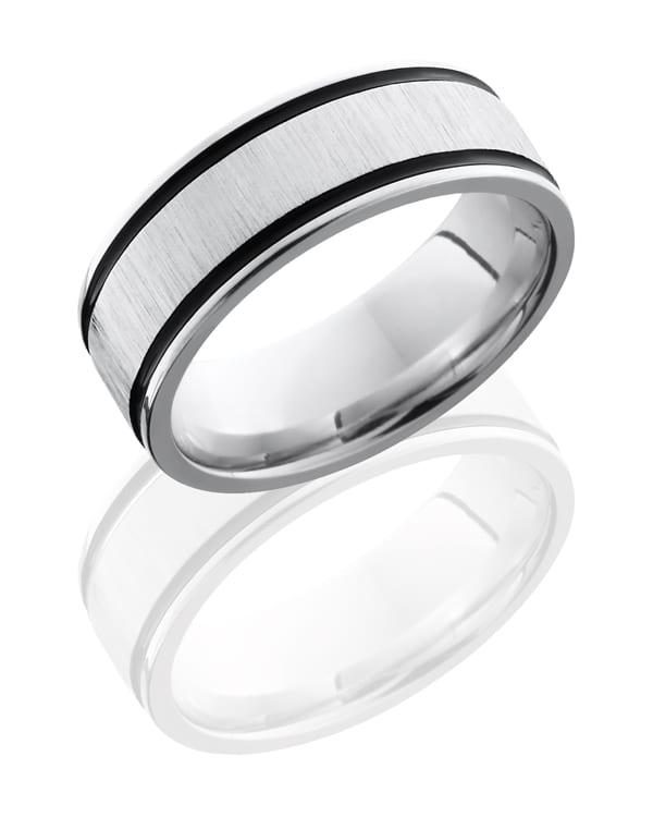 Cobalt Chrome 8mm Flat Band with Antiqued Grooves
