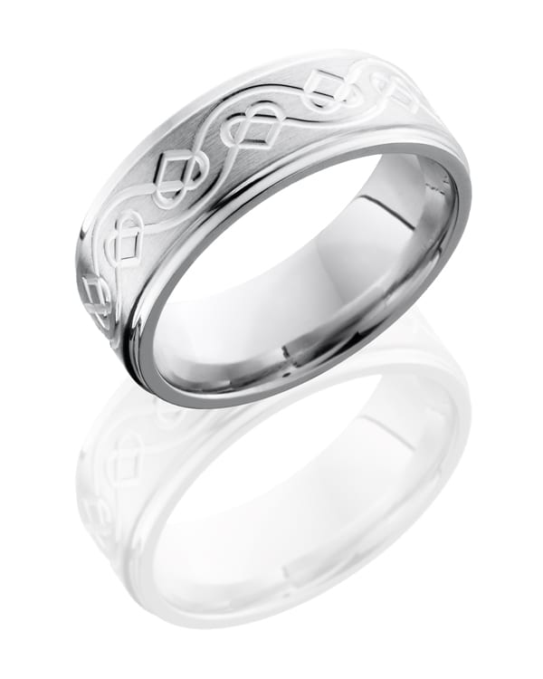 Cobalt Chrome 8mm Flat Band with Grooved Edges and Celtic Pattern