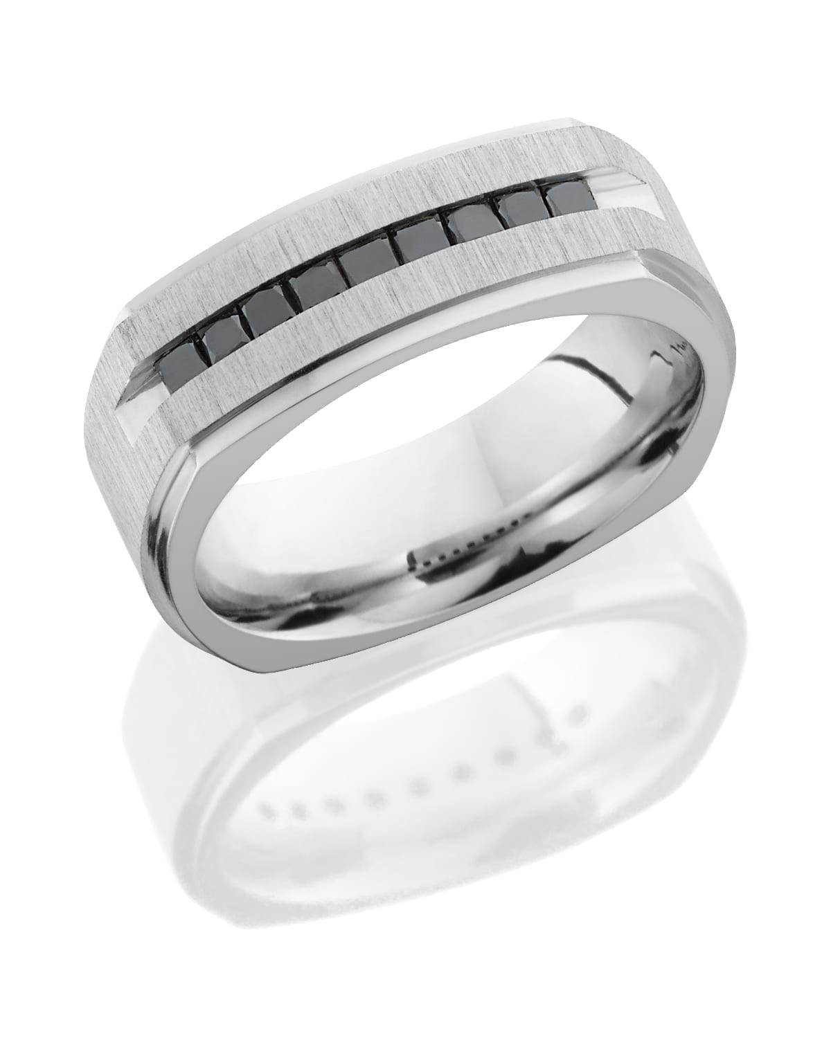 Cobalt Chrome 8mm square band with grooved edges and 9 channel set black diamonds