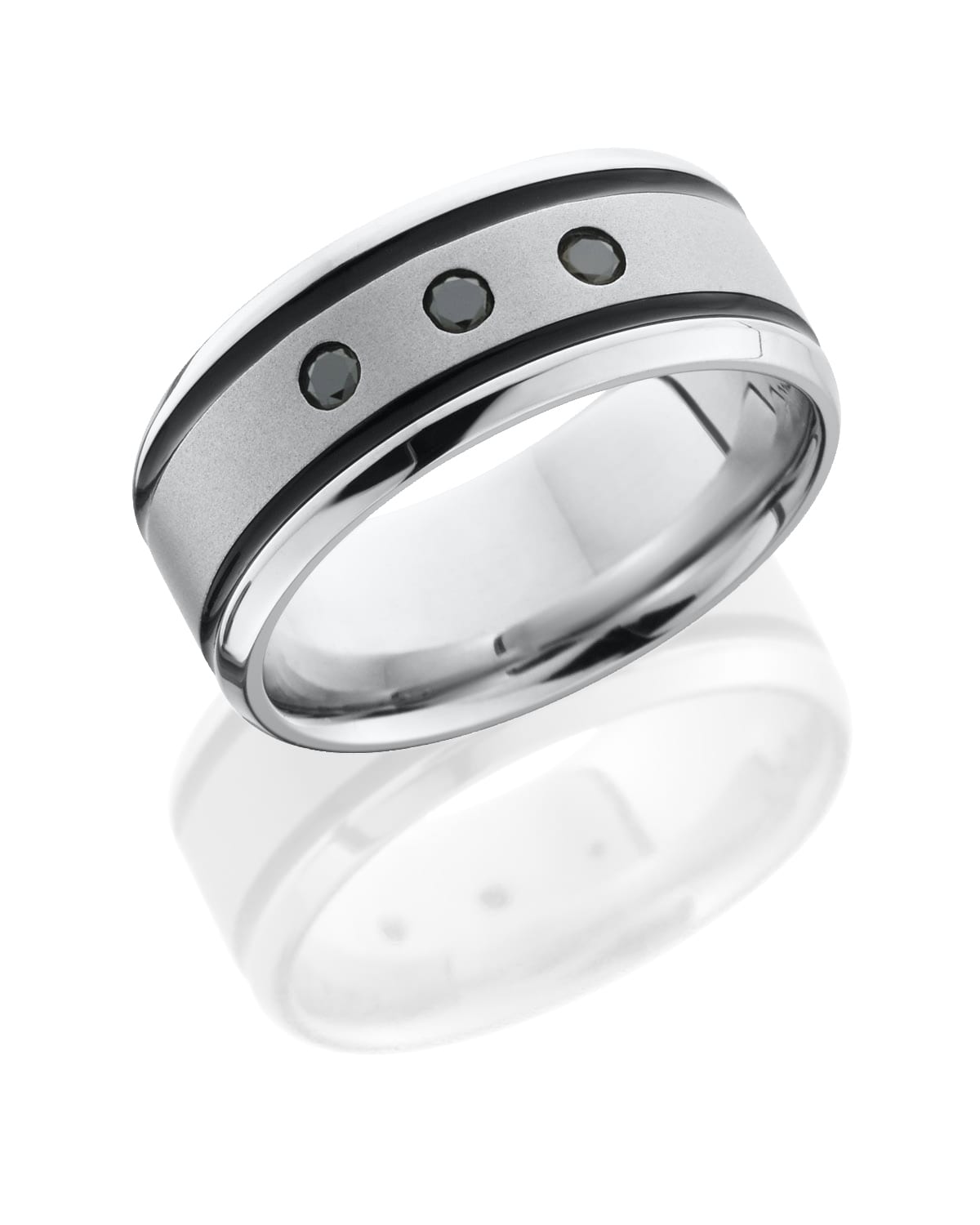 Cobalt Chrome 9mm beveled band with three .06ct black diamonds bezel set