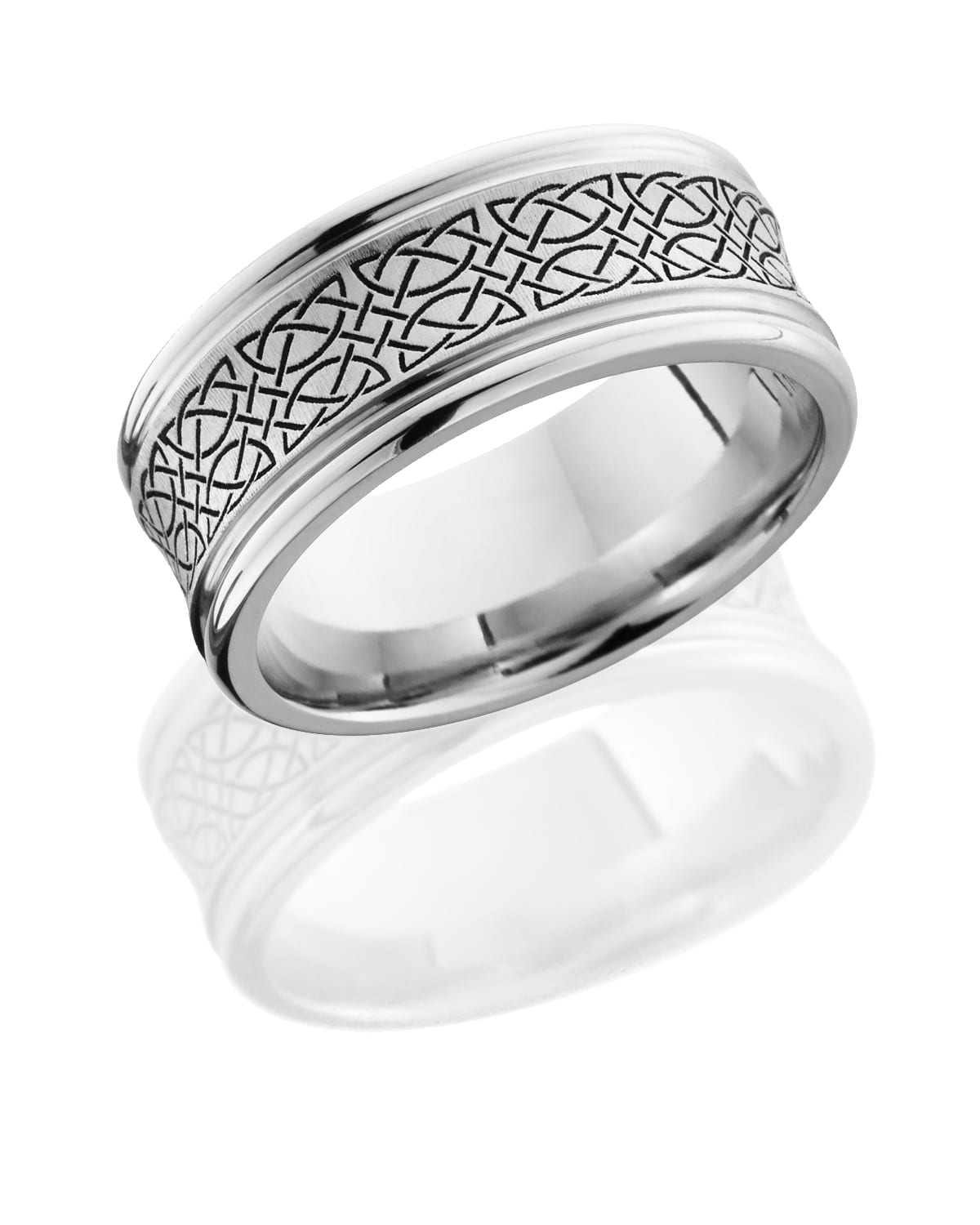 Cobalt Chrome 9mm concave band with rounded edges and laser carved Celtic 18 pattern