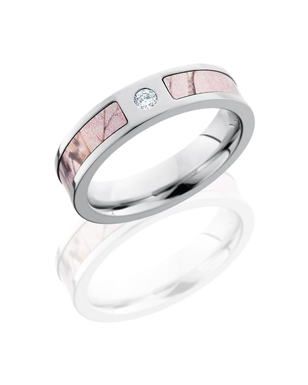 Cobalt Chrome 5mm Flat Band with 3mm of Pink Realtree AP and Flush Set White Round Diamond