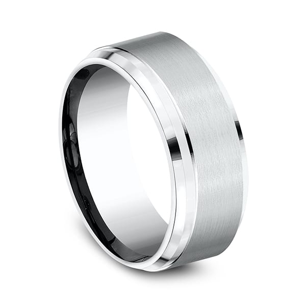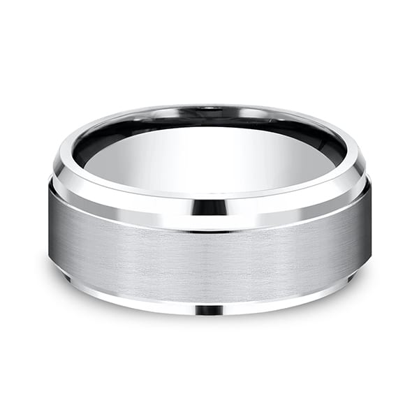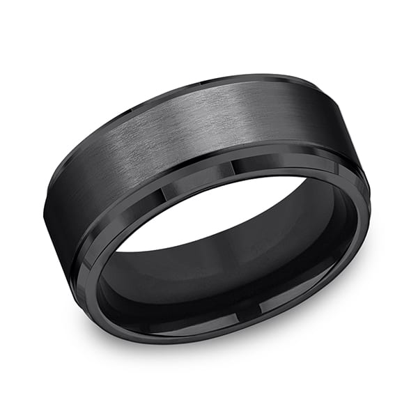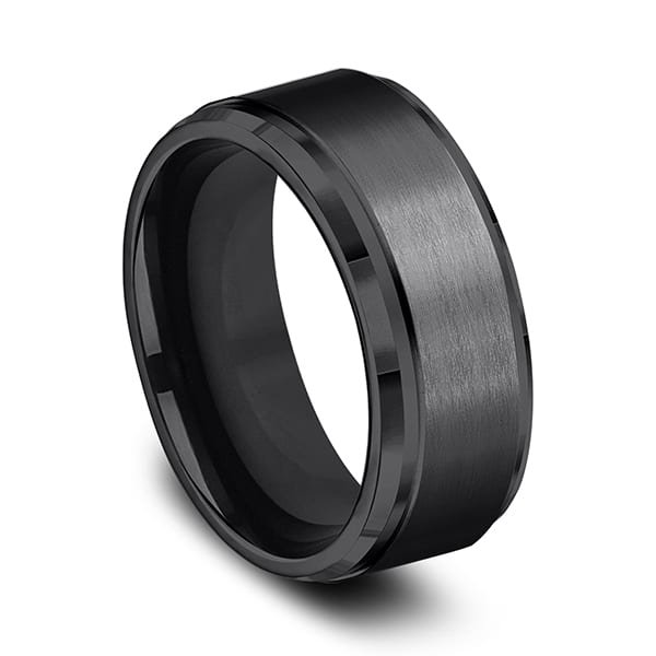 This incredible cobalt 9mm comfort-fit satin finish wedding band features a high polished step edge. Forge by Benchmark offers contemporary wedding rings in cobalt, titanium, Damascus Steel and tungsten. Some of our most durable and rugged wedding bands for men, our Forge line of wedding rings are sure to last a lifetime..