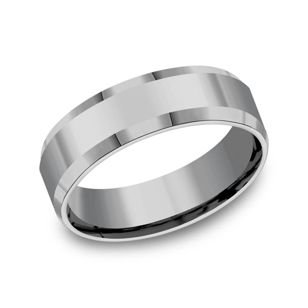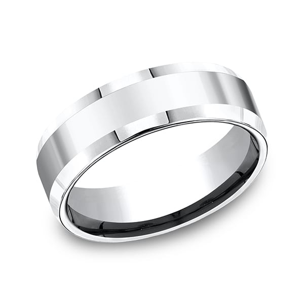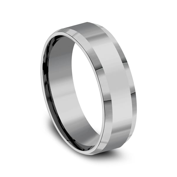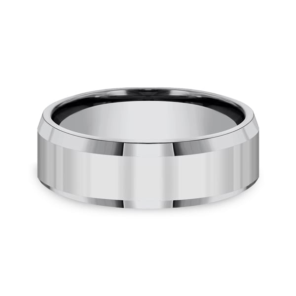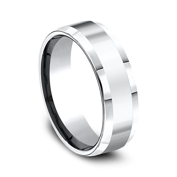 This unique cobalt 7mm comfort-fit wedding band features a high polished finish with a beveled edge that offers remarkable style. Forge by Benchmark offers contemporary wedding rings in cobalt, titanium, Damascus Steel and tungsten. Some of our most durable and rugged wedding bands for men, our Forge line of wedding rings are sure to last a lifetime.