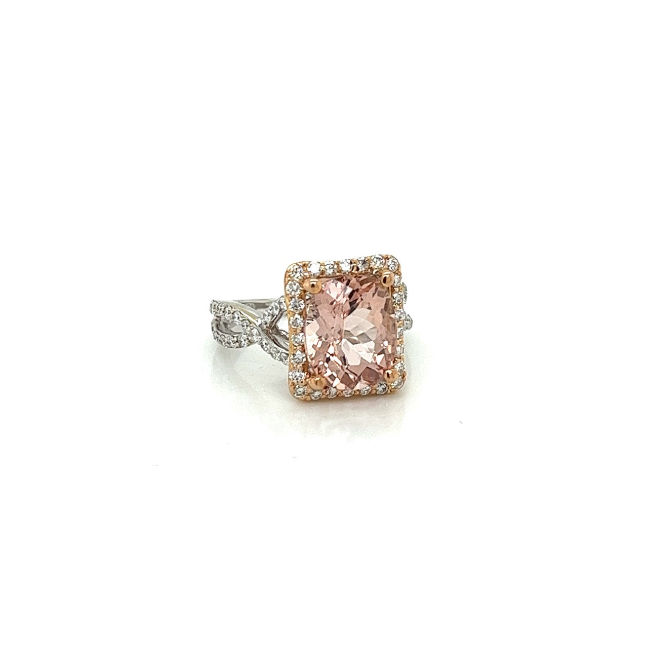 18K ROSE GOLD DIAMOND AND MORGANITE RING WITH 1 MORGANITE 3.95CT AND DIAMOND 1.00CT
