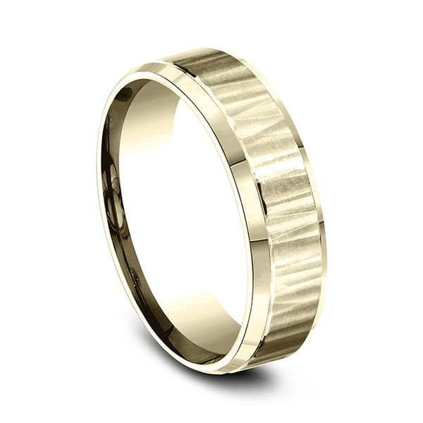 A departure from our traditional hammered finish this 6mm comfort-fit design ring features beautifully elongated vertical hammering for a more unique look. Benchmark has been manufacturing designer wedding rings in gold platinum and palladium for over 40 years. Made in the USA using 100% recycled materials you can feel good about choosing Benchmark wedding bands.